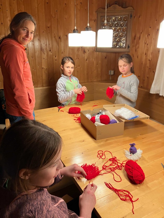 Die Kinder machten Flutlicht-Schlittenfahren mit den Stirnlampen, das unter großer Begeisterung direkt vor dem Haus durchgeführt wird. Aber nicht nur im Dunkeln wurde Schlittengefahren, sondern auch tagsüber. Selbstverständlich auch mit selbstgebauten Schanzen. Eine selbstgegrabene Schneehöhle durfte auch nicht fehlen. Im Haus wurde viel gespielt, gelacht und gebastelt.