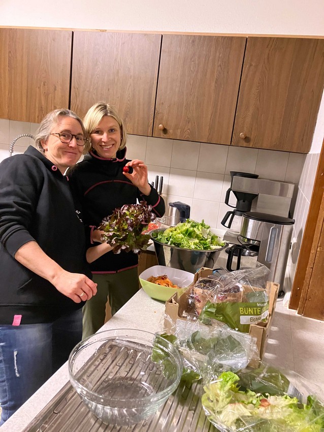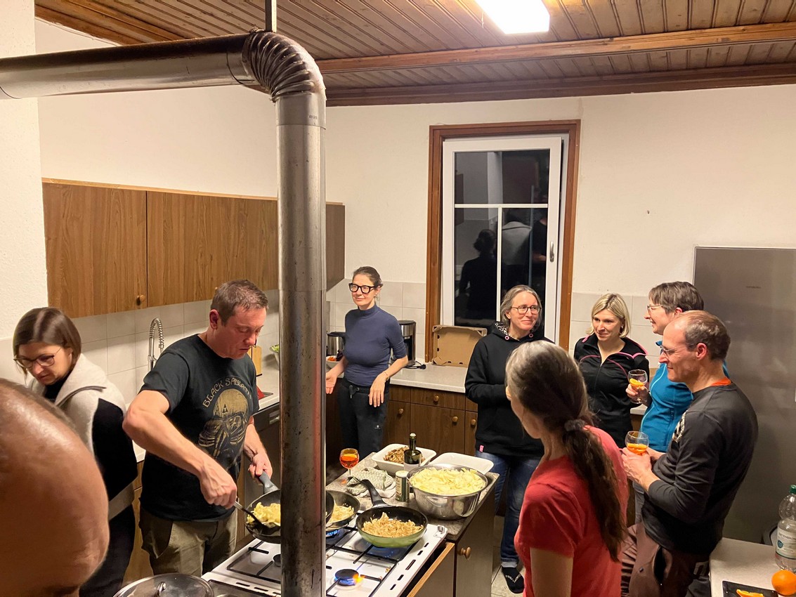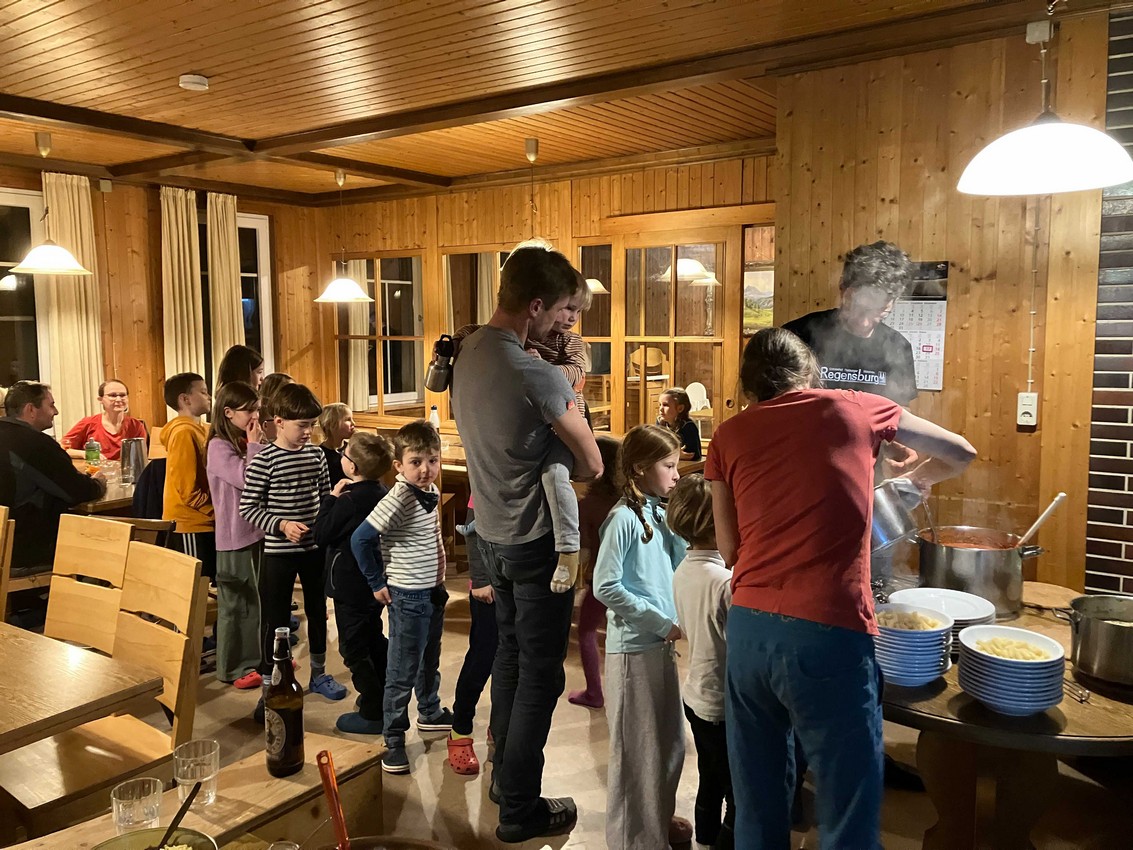 Die folgenden Bilder zeigen einen kleinen Blick ins Hüttenleben und die langen Schlangen mit hungrigen Kindern und Erwachsenen nach ausgefüllten Tagen. Die ersten Bilder zeigen FullHouse in Missen mit 41 Personen. Die Abende auf der Hütte sind wie immer auch für die Erwachsenen toll. Mit Küchenparty und Musik während dem gemeinsamen Kochen, Spielrunden und der ein oder anderen kurzen Nacht.