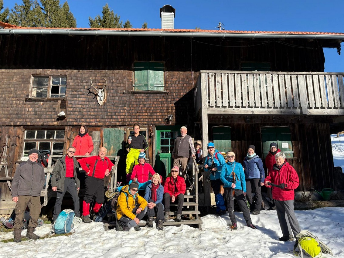 Bei 4 Grad Minus und Nebel starteten 18 Teilnehmer der DAV Seniorengruppe von Laupheim in Richtung Allgäu. Schon bald löste sich der Nebel auf, und bei schönstem Winterwetter wurde der Parkplatz Ulmer Tal im Kreuztal erreicht.