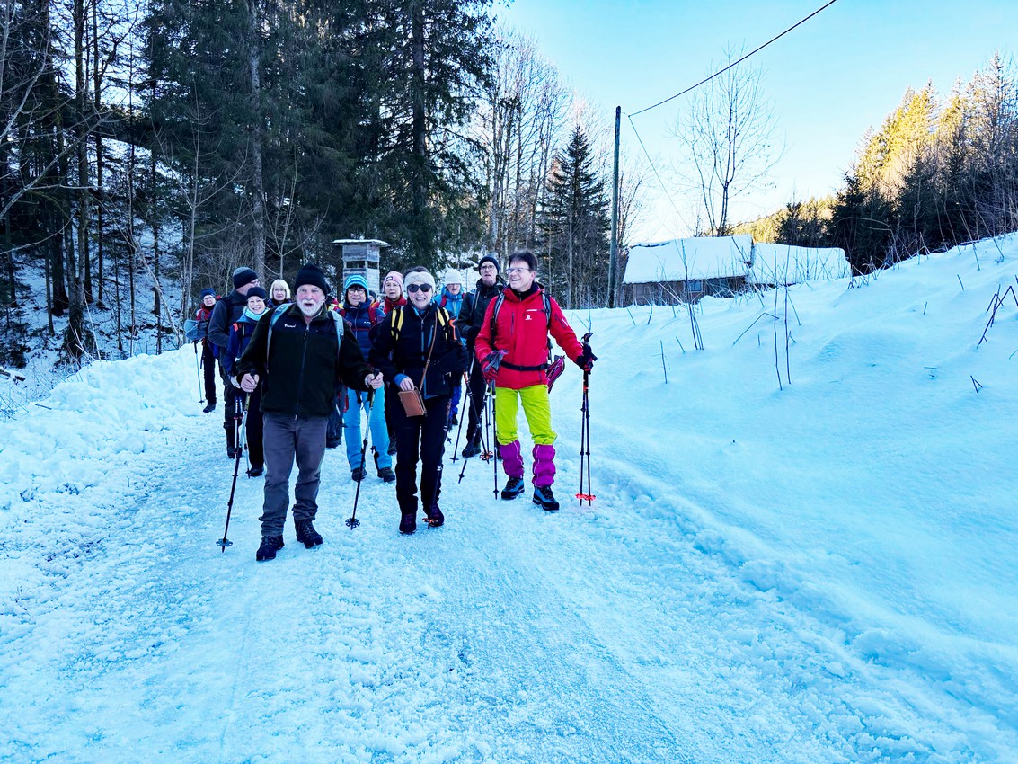 Der Abstieg erfolgte auf dem Rücken zwischen Kreuzbachtal und UlmerTal. Das Letzte Wegstück verlangte wiederum einiges an Kozentration wegen Vereisung des Weges, aber alle erreichten wohlbehalten den Ausgangspunkt.