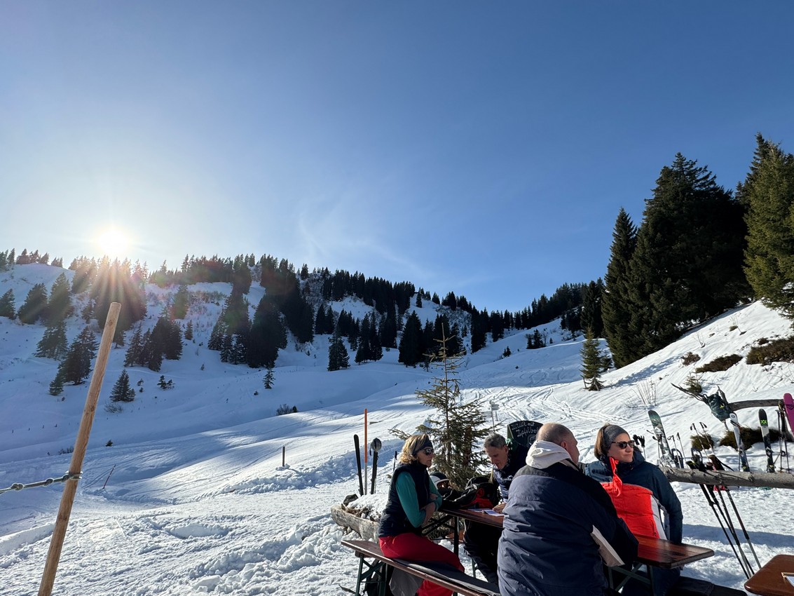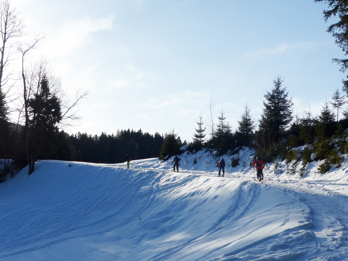 Die Hänge oberhalb der Burglhütte bieten aufgrund ihrer nordostseitigen Exposition für gewöhnlich guten Pulverschnee. Leider waren, aufgrund der hohen Temperaturen und der Sonneneinstrahlung der letzten Tage, die Bedingungen ziemlich wechselhaft von Bruchharsch über Pulverschnee war alles geboten. Anschließend führte uns die Abfahrt über den Fahrweg und das Skigebiet zum Parkplatz wo wir den schönen Skitourentag beenden.