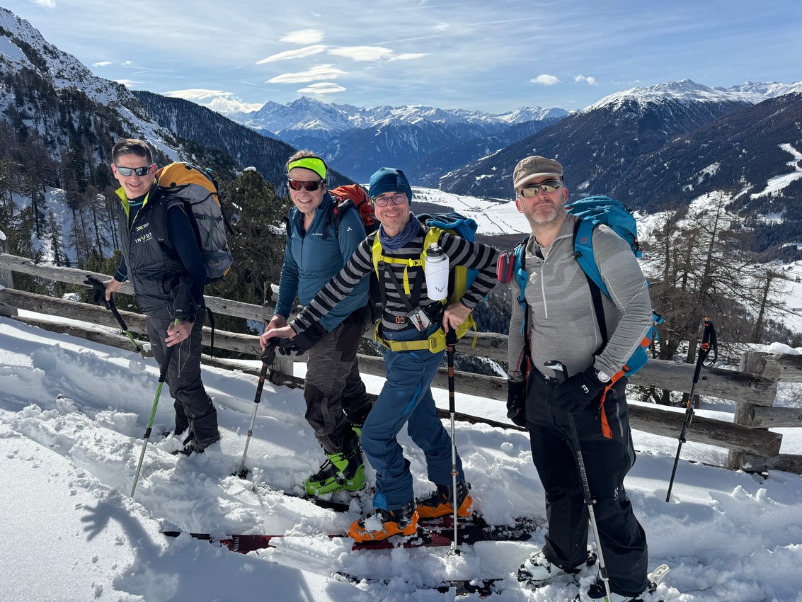 Fazit; Dieses Wochenende hat einmal mehr gezeigt: Auch bei Lawinenwarnstufe 4 sind Skitouren möglich –vorausgesetzt, man plant umsichtig und bleibt konsequent defensiv. Keine steilen Powderabfahrten, keine 3000er-Gipfel – dafür ein Wochenende mit tollen Eindrücken, guten Gesprächen und einer harmonischen Gruppe. Ein großes Dankeschön an unseren Tourenführer Hartmut für die sichere und besonnene Führung.