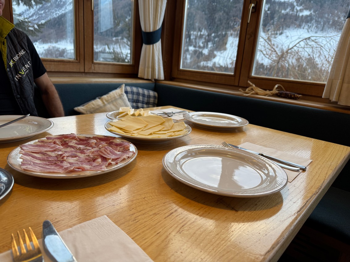 Untergebracht waren wir bei Karl Perfler im Gasthof Weißkugel in Matsch. Schnell wurde klar: Karl ist ein echtes Original des Vinschgaus. Als ehemaliger Betreiber des Kulturgasthauses Tschenglsburg brachte er nicht nur Geschichten, sondern auch Musik, Gesang und tiefgründige Gespräche mit an den Tisch. Die Abende wurden so zu einem besonderen Erlebnis –begleitet von hervorragender Südtiroler Küche.