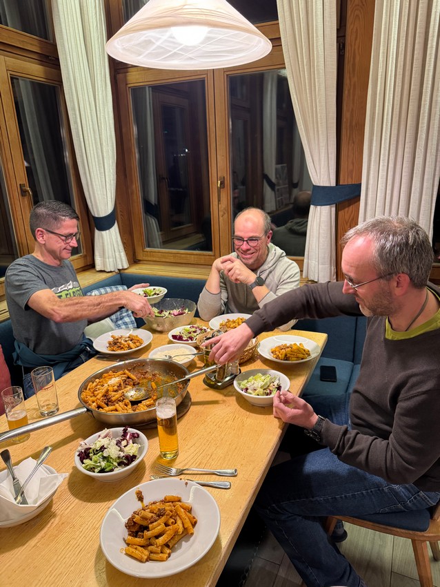 Eigentlich war alles anders geplant: Unser Ziel für das Wochenende vom 20. bis 22. Februar sollte das Berghaus Malbun in Liechtenstein sein. Doch der diesjährige Winter hatte andere Pläne. Schneemangel zwang uns kurzfristig zum Umdenken –und so fiel die Entscheidung auf Südtirol, genauer gesagt nach Matsch im Matscher Tal. Was zunächst wie ein organisatorischer Rückschlag wirkte, setzte sich auch in der Gruppengröße fort: Mehrere Absagen reduzierten unsere Runde auf drei Teilnehmer plus unseren Tourenführer Hartmut. Doch schnell wurde klar –klein, aber fein trifft es perfekt.