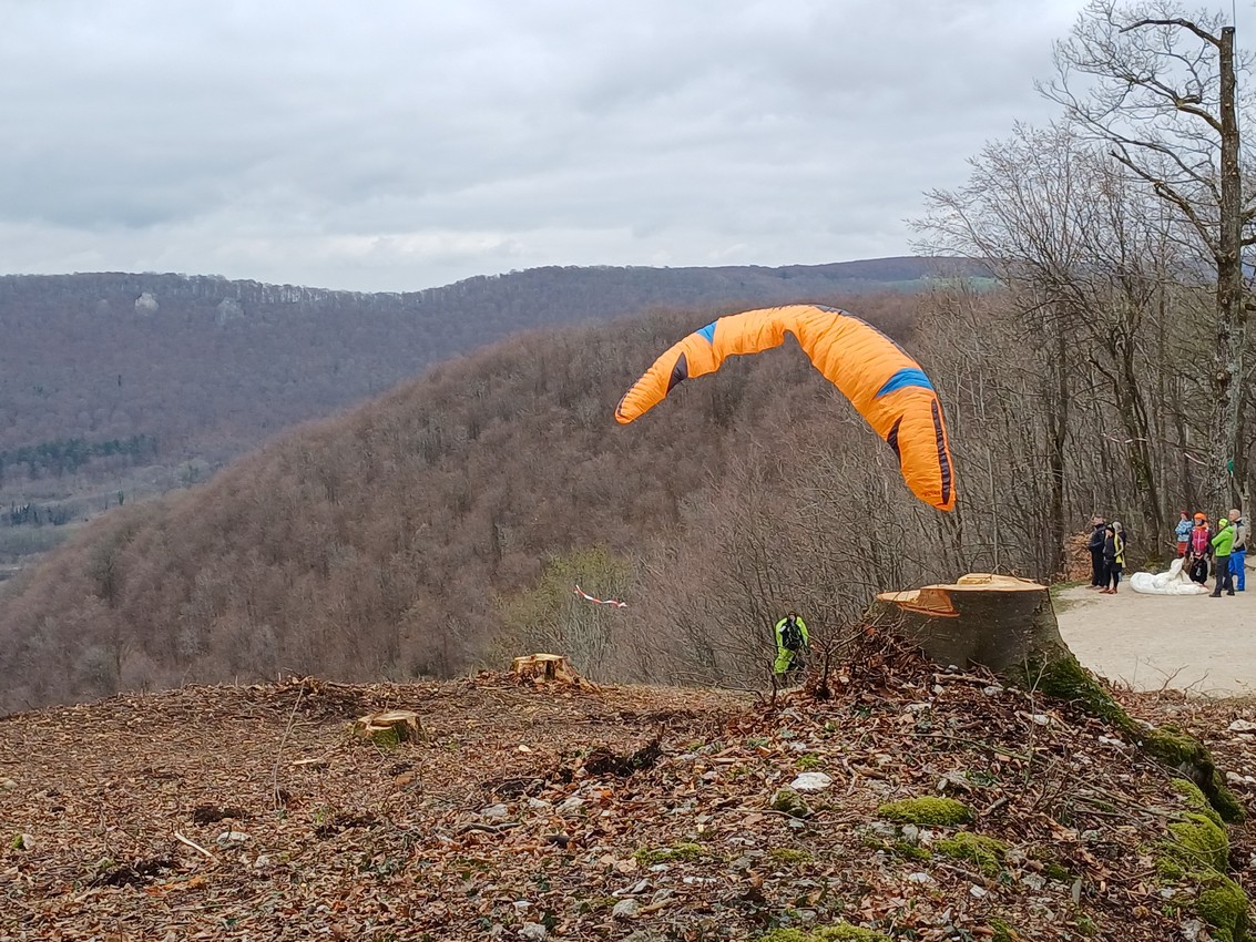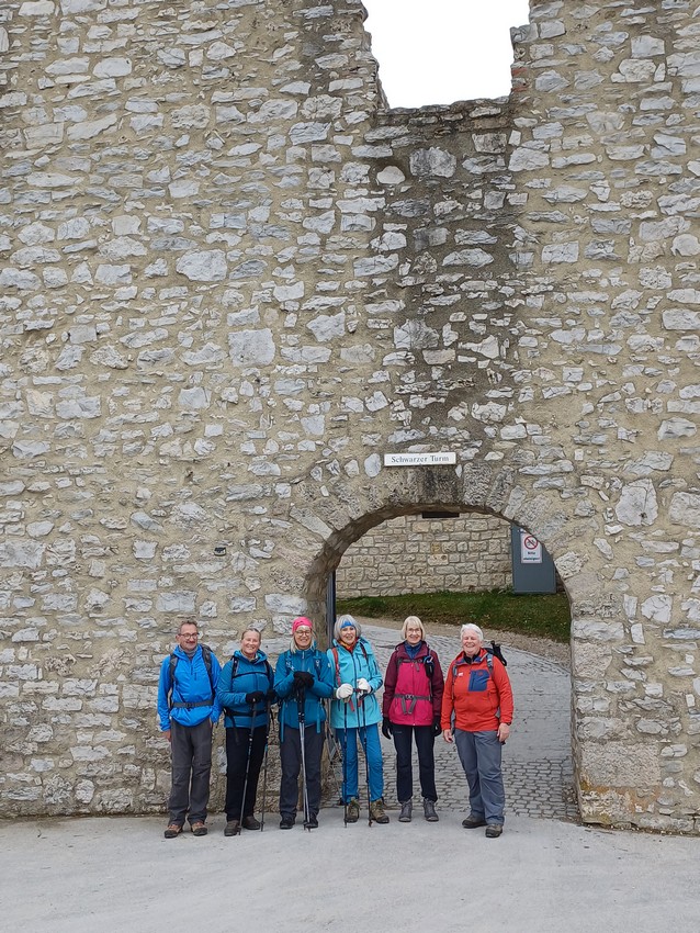 Der Weiterweg führte entlang des Albtraufs zur Festung Hohenneuffen, wo wir das gesamte Panorama von der Achalm bis zur Teck genießen konnten. Unweit von der Festung suchten einige Mutige die nötige Thermik fürs Gleitschirmfliegen, die tatsächlich für einen kurzen Flug ausreichte.